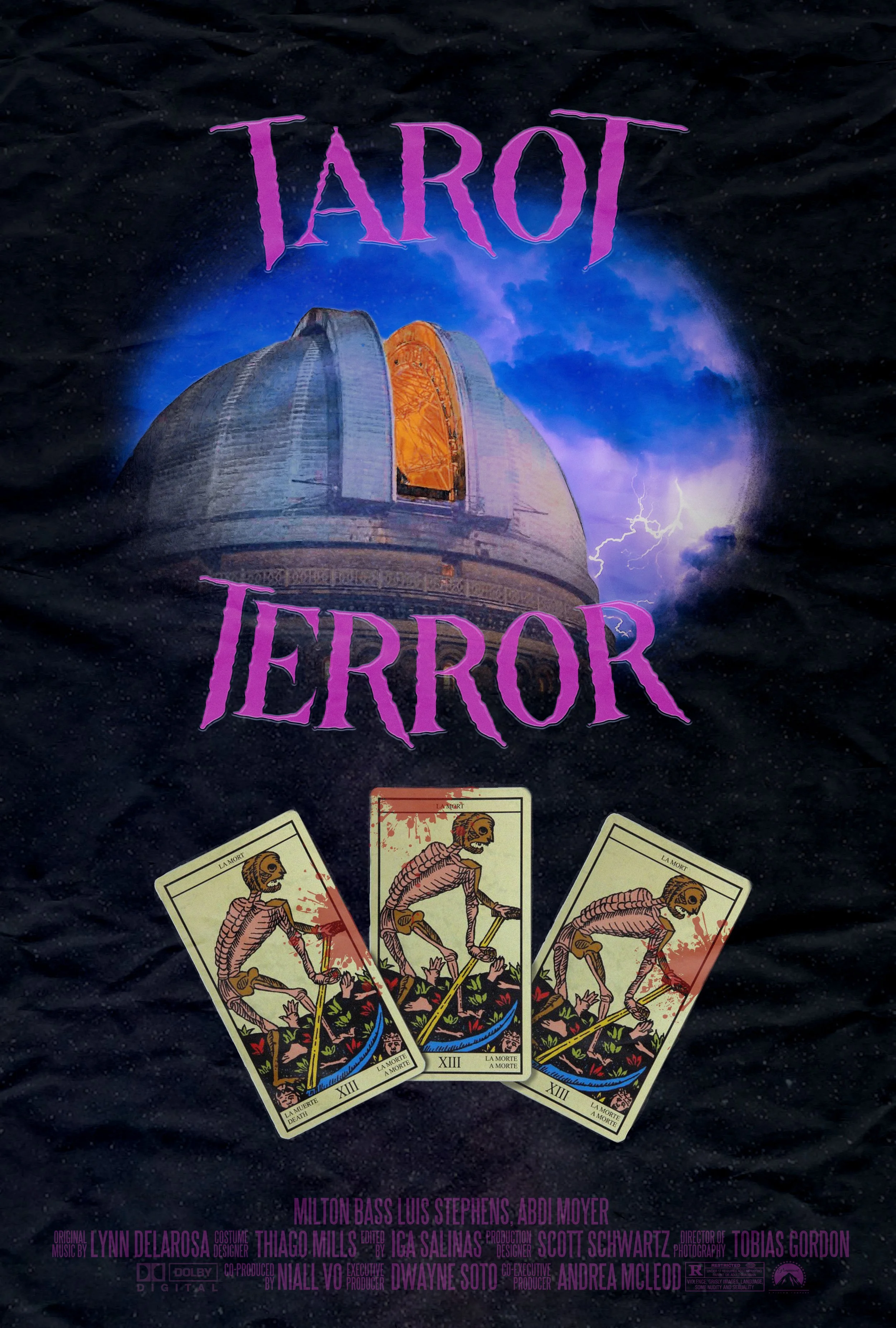 A poster inspired by late 90s horror films, focusing on the contrasts of light and dark to give the poster a ominous feel.