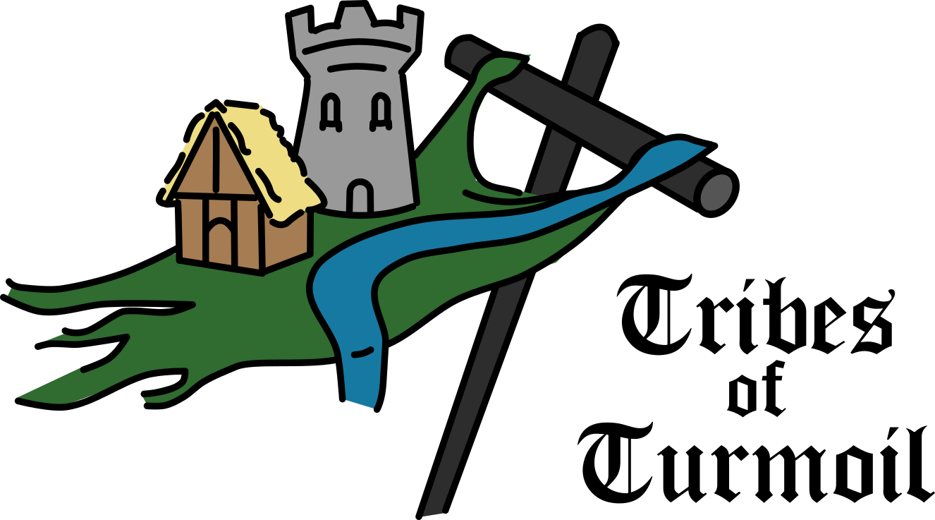Tribes of Turmoil is a table top board game where players rule tribes and try to grow them in strength while battling other tribes to try to be the last one standing. This logo tried to capture that feeling of a civilization with a tattered banner to represent the constant struggle to weather what ever is thrown at them.